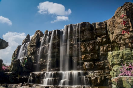 水簾洞水流湍急,寬60米,比著名的黃果樹(shù)瀑布還要寬30多米。這里的山巖是從真實(shí)的石頭上翻制下來(lái),用玻璃鋼鑄片組裝,周?chē)闹参锒际歉叻抡嬷参,包括棕櫚在?nèi)的十多種品種。
