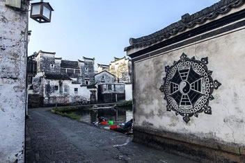 以鐘池為中心,有八條小巷向四面八方延伸,直通村外八座高高的土崗,其平面酷似八卦圖。小巷又派生出許許多多橫向環(huán)連的窄弄堂,弄堂之間千門萬戶,星羅棋布著許多古老縱橫的民居。接近鐘池的小巷較為筆直,往外延伸時(shí)漸趨曲折,而許多小巷縱橫相連,似通非通,猶如迷宮一般。外人進(jìn)入小巷,往往好進(jìn)難出,甚至迷失方向。