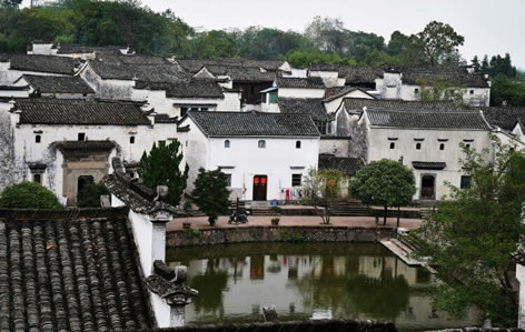諸葛八卦村原來叫高隆村,位于浙江省金華市蘭溪市西部。諸葛八卦村一帶地形如鍋底,中間低平,四周漸高。四方來水,匯聚鍋底,形成一口池塘,這就是鐘池。鐘池是諸葛八卦村的核心所在,也是布列“八陣圖”的基點(diǎn)。鐘池并不大,但這口水塘半邊有水,半邊為陸,形如九宮八卦圖中的太極,奇妙無比。
