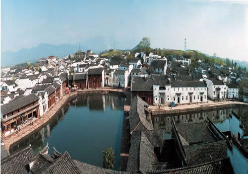 諸葛八卦村,位于浙江中西部蘭溪市境內(nèi)的群山中,據(jù)考證,該村是由諸葛亮27世孫諸葛大師于元代中后期開始營(yíng)建的。有600余年的歷史,仍保存完好,成為人們旅游訪古的新去處。村落在8座小山的合抱之中,這8座小山的分布很像八卦的樣子,形成外八卦;村中的樓宇建筑、街道八方呼應(yīng)!扮姵亍蔽挥谥行模铺珮O陰陽魚圖,8條小巷向外輻射,形成內(nèi)八卦。