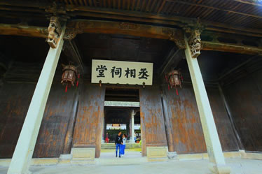 丞相祠堂也是為紀(jì)念諸葛亮而修建的,與大公堂相距百米,面積1400平方米。坐東朝西,平面按“回”字形布局,有屋52間,由門廳、中庭、廡廊、鐘鼓樓和享堂組成,古樸渾厚,氣勢(shì)非凡。祠堂雕梁畫棟,門窗欄桿等部件均雕刻精細(xì),美不勝收。中庭是祠堂最精彩的部分,中間四根合抱大柱,選用上好的松、柏、桐、椿四種木料制成,取“松柏同春”之意,祈求家族世代興旺。中庭兩邊廡廊各七間,塑諸葛后裔中的杰出人士,用來激勵(lì)諸葛子孫們奮發(fā)向上,成就一番事業(yè)。從廡廊拾級(jí)而上,兩旁分列鐘、鼓二樓。祠堂最后是享堂,中塑諸葛亮像,高2米余,兩側(cè)分侍諸葛瞻、諸葛尚及關(guān)興、張苞像,氣韻生動(dòng),呼之欲出。